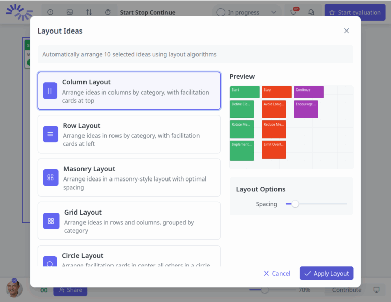 This automatic layout feature represents a significant step toward AI-assisted workshop facilitation. By removing the manual overhead of organization, facilitators can focus on what matters most: guiding meaningful conversations and extracting valuable insights.